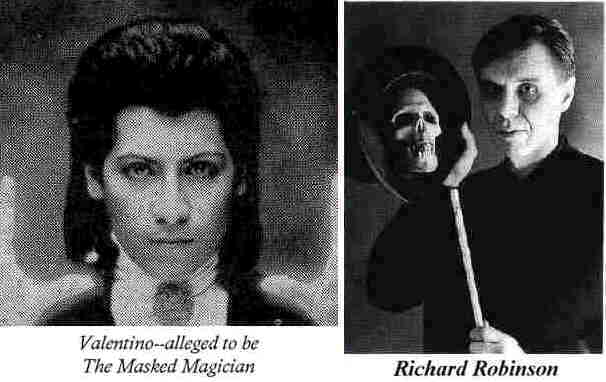 On October 29, 1998, Fox aired its most recent exposure show, promising to reveal "one of the biggest secrets in magic--the identity of the Masked Magician." Was there ever any doubt? All of you who had seen this page already knew the answer--Valentino (Leonardo Montana).
